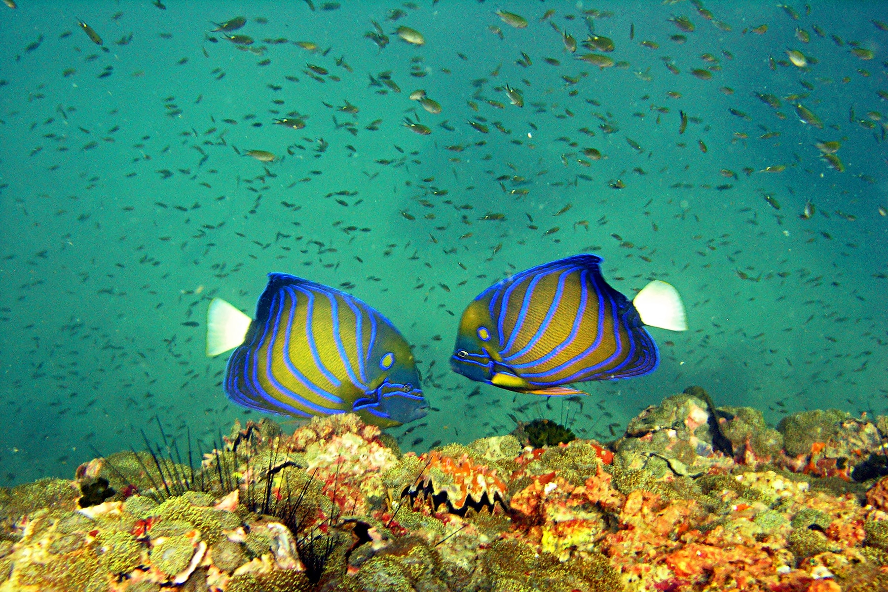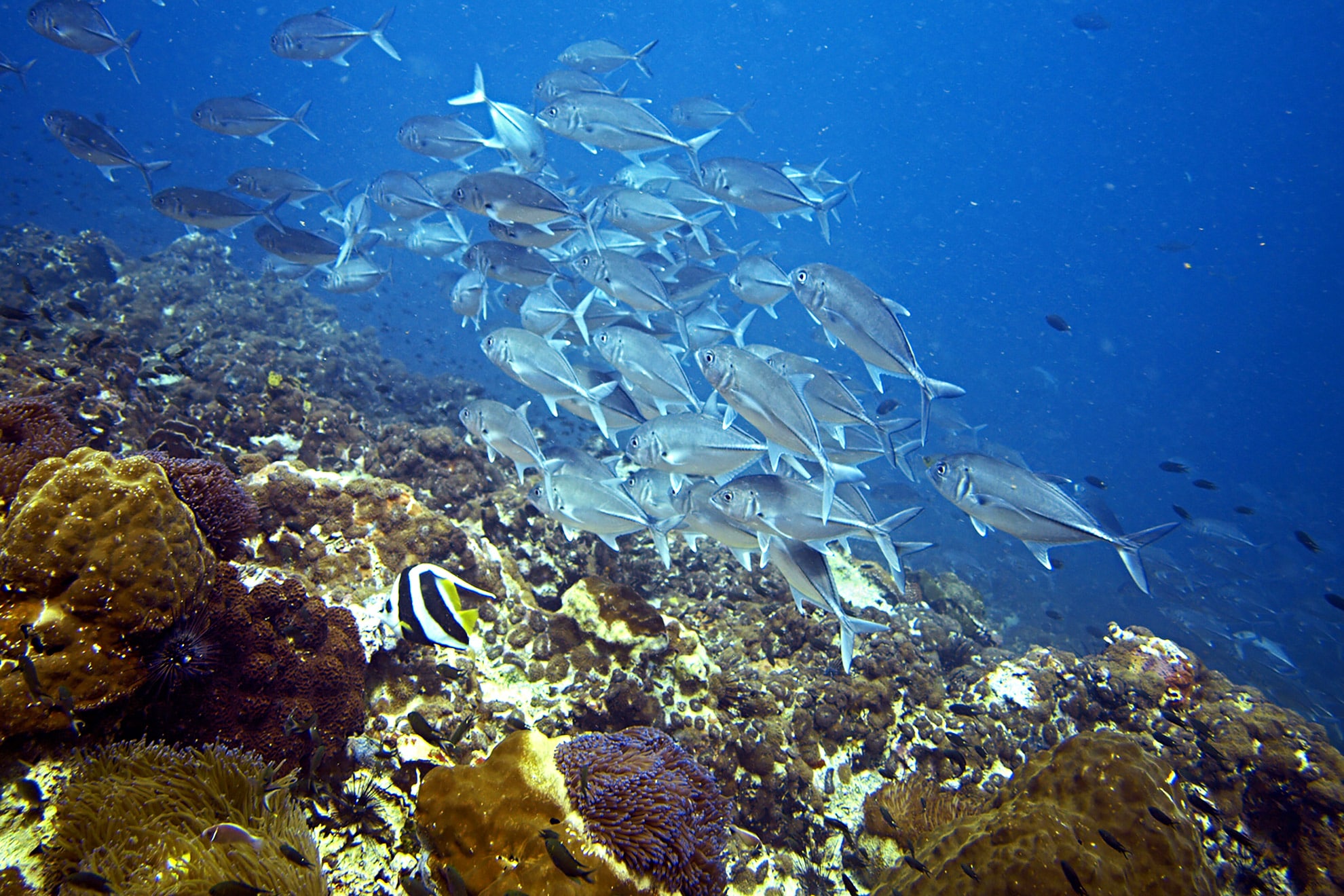 During the dives you will discover intact and colorful coral reef formations as well as a variety of marine life. These include Barracudas, king mackerel, bat fish, giant groupers and even whale sharks.
