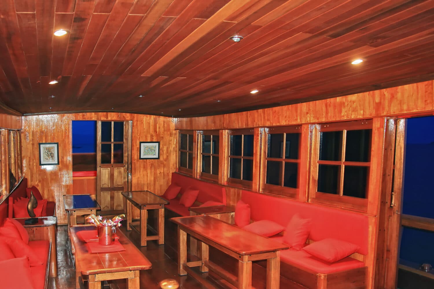 Upon arrival at the pier, the tour guides will welcome you on board. There a few small appetizers and some fruits are provided, too.