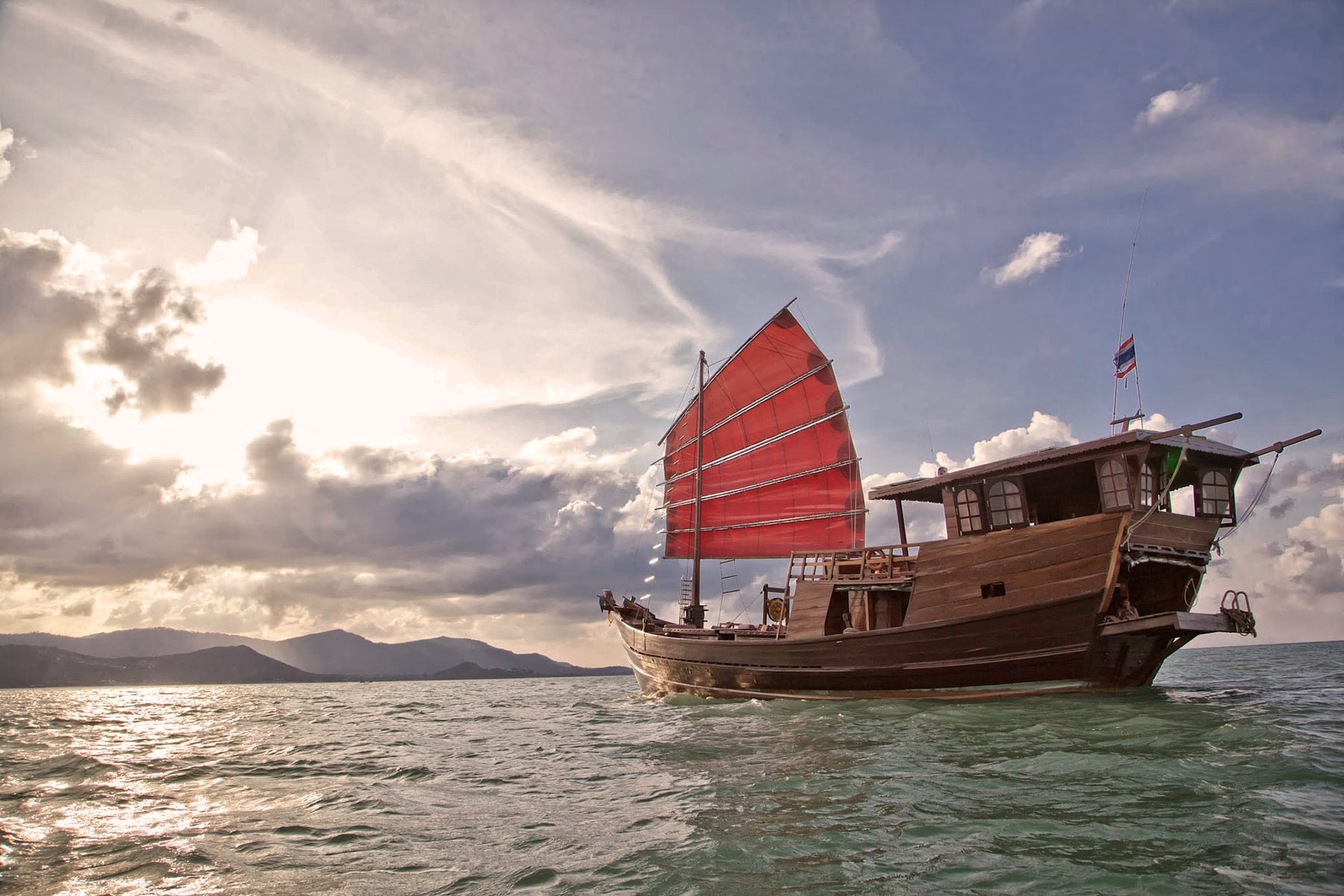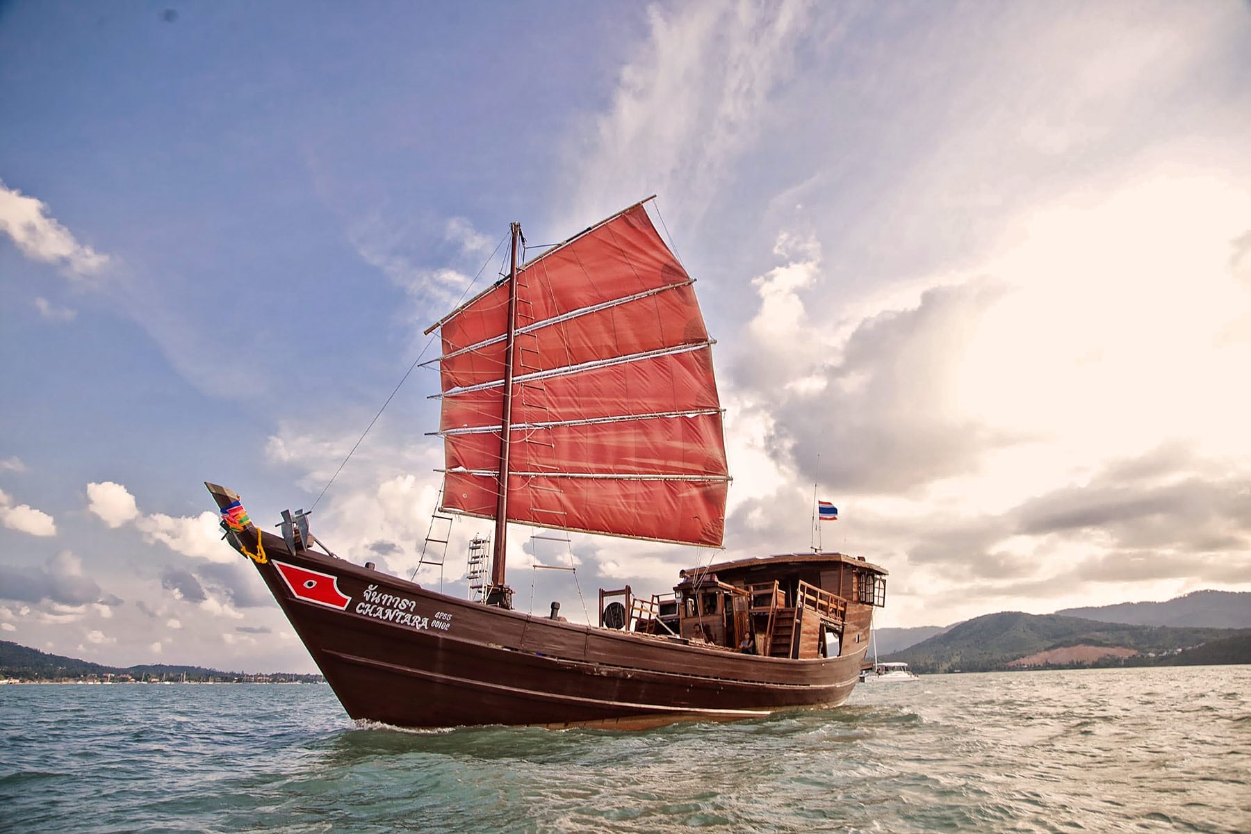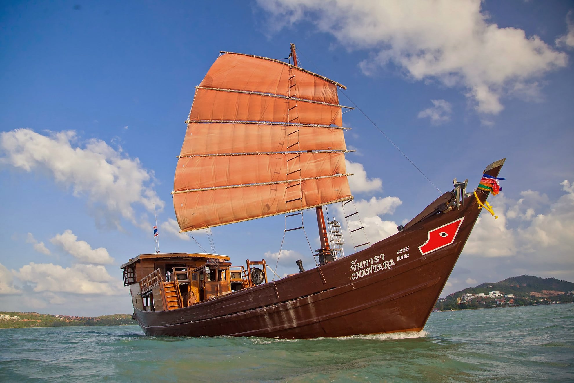 This Sailing excursion around Koh Phangan is a highly recommended day trip with a traditional Burmese junk boat. The excursion leads around Koh Samui’s neighboring island Koh Phangan. During the cruise you will see the beautiful beaches and natural coastal landscape of Koh Phangan. The first stop on this tour is at the small island of Koh Ma with a nice carol bay. Here you will have the opportunity to snorkel and discover beautiful corals, numerous sea anemones and many types of tropical fish. The second stop is Thong Nai Pan beach which is considered one of the most beautiful beaches in Thailand. Here you can relax and zip a cocktail inside a cozy beach bar, enjoy a beach massage or take a spin on the jet ski. In the late afternoon we cruise back to Samui along the rugged east coast. On the way back you will also experience one of the most amazing sunsets.