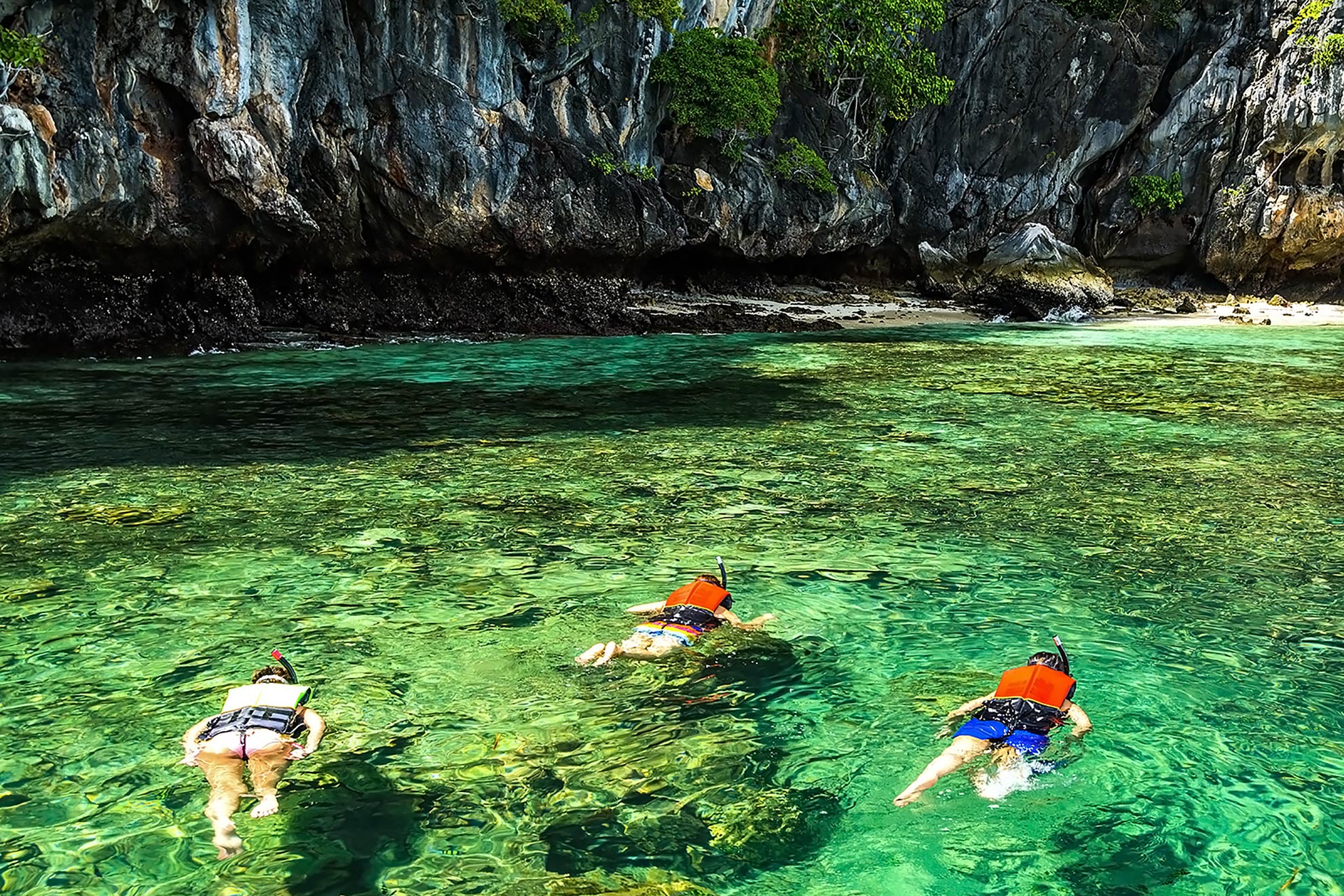 after lunch the ship anchors next to a beautiful coral reef at Koh Ma. This is one of the few snorkeling spots that is still spared from mass tourism. Thus, the corals are intact, and you will see some interesting sea plants and numerous tropical fish.