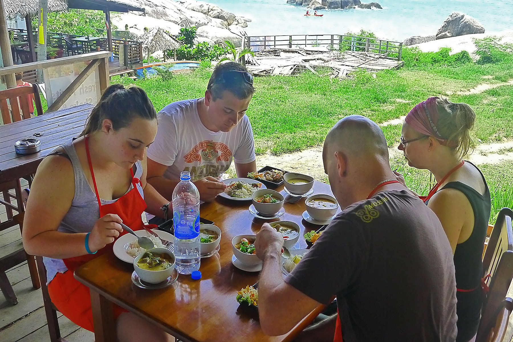 Thai cooking classes! Do you love the taste and freshness of authentic Thai dishes? Then simply learn how to do it yourself at home for family and friends. Our cooking class takes place in a natural environment with a sea view at the grandfather and grandmother rocks. The courses are twice a day. The first time in the morning from 8.30 am. to 12.30 pm. In the afternoon he second course takes place from 1.30 pm to 5.30 pm.